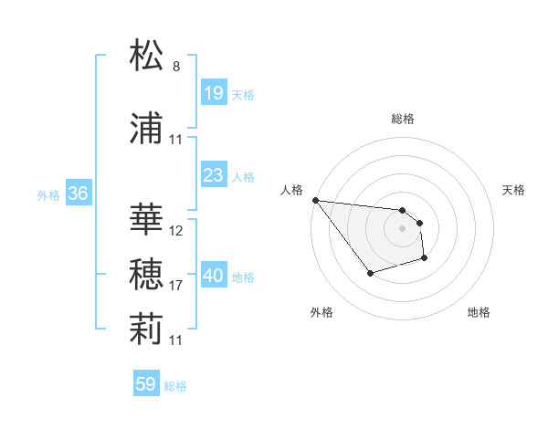 松浦 華穂莉さんを姓名の画数から五運を鑑定