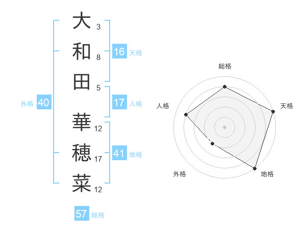 大和田 華穂菜さんを姓名の画数から五運を鑑定