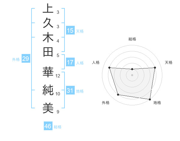 上久木田 華純美さんを姓名の画数から五運を鑑定