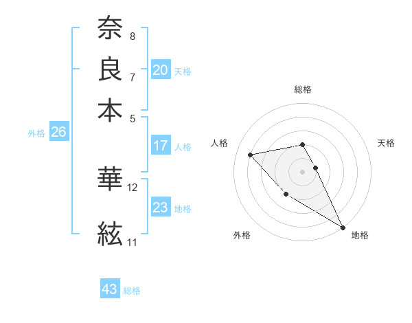 奈良本 華絃さんを姓名の画数から五運を鑑定