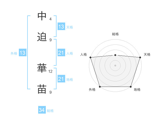 中迫 華苗さんの天格は13画の5点!
