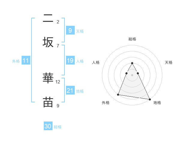 二坂 華苗さんの総格は30画の2点!