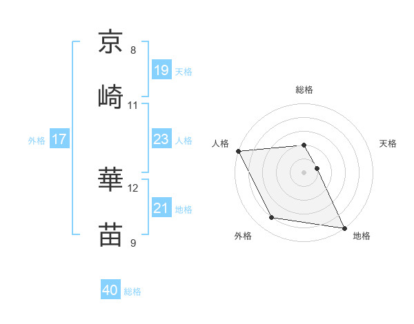 京崎 華苗さんの外格は17画の4点!