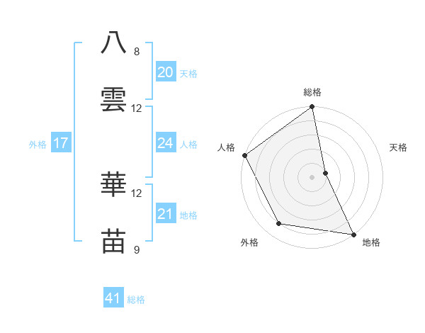 八雲 華苗さんを姓名の画数から五運を鑑定