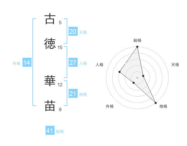 古徳 華苗さんを姓名の画数から五運を鑑定