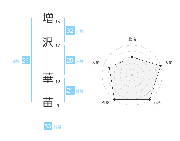 増沢 華苗さんの天格は32画の5点!