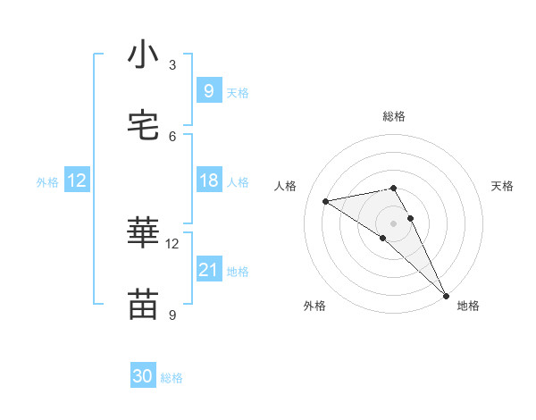 小宅 華苗さんを姓名の画数から五運を鑑定