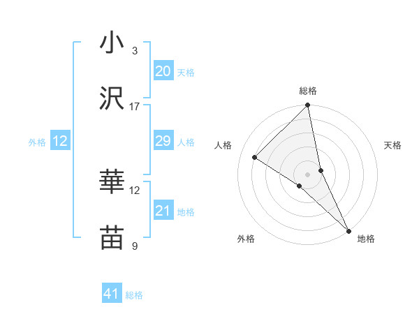 小沢 華苗さんの天格は20画の1点!
