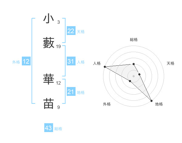 小藪 華苗さんの天格は22画の1点!