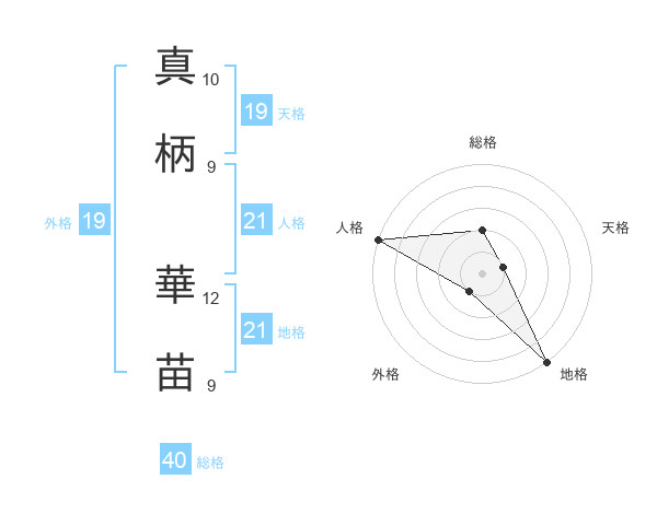真柄 華苗さんの外格は19画の1点!