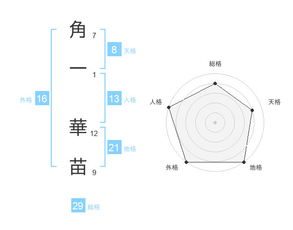 角一 華苗さんの天格は8画の4点!