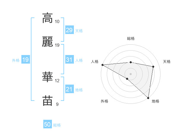 高麗 華苗さんを姓名の画数から五運を鑑定