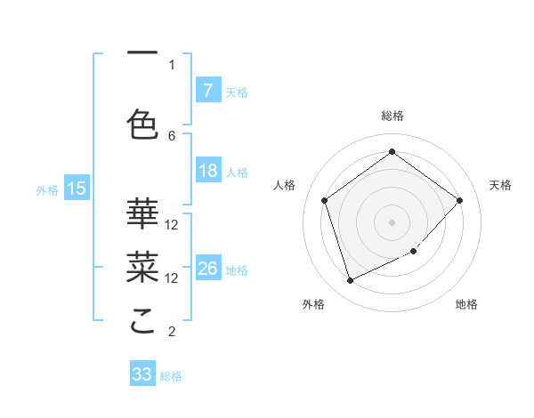 一色 華菜こさんを姓名の画数から五運を鑑定