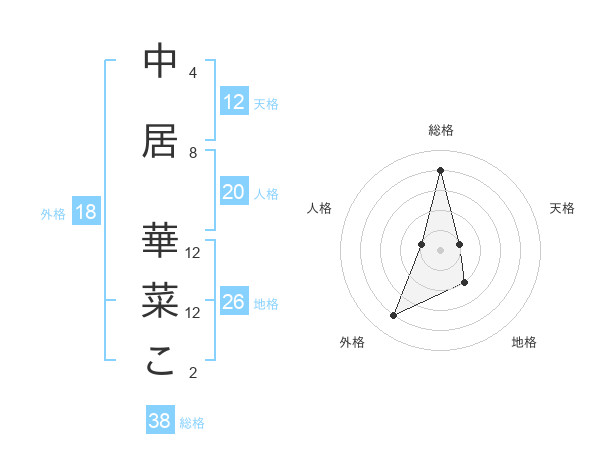 中居 華菜こさんの総格は38画の4点!