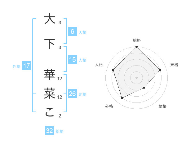 大下 華菜こさんの総格は32画の5点!