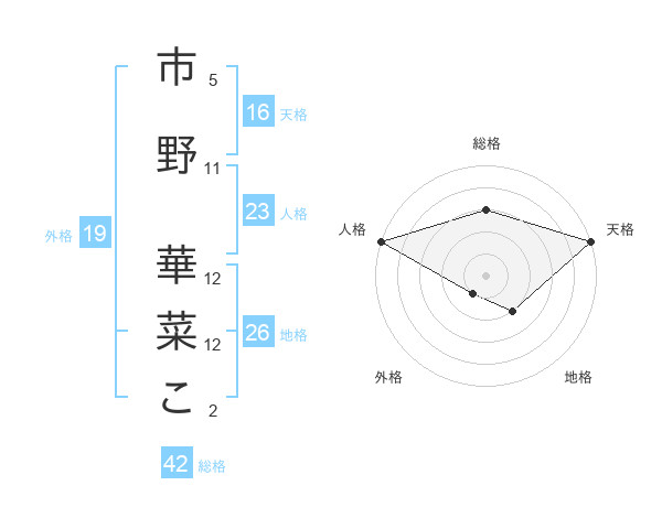 市野 華菜こさんを姓名の画数から五運を鑑定
