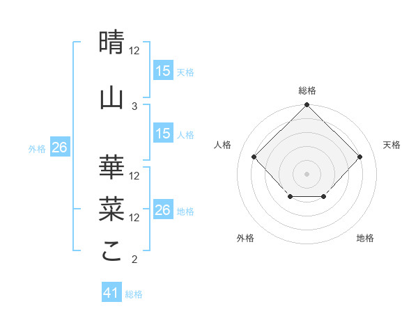晴山 華菜こさんの外格は26画の2点!