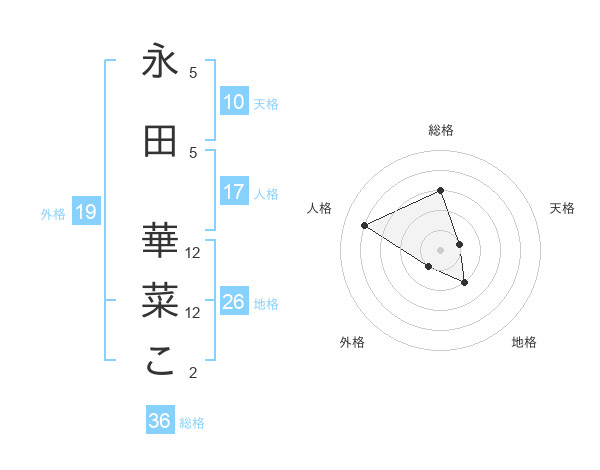 永田 華菜こさんを姓名の画数から五運を鑑定