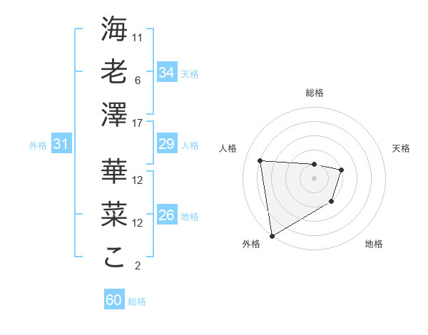 海老澤 華菜こさんを姓名の画数から五運を鑑定