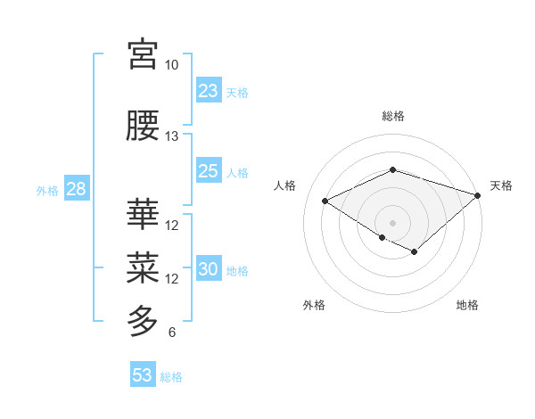 宮腰 華菜多さんを姓名の画数から五運を鑑定
