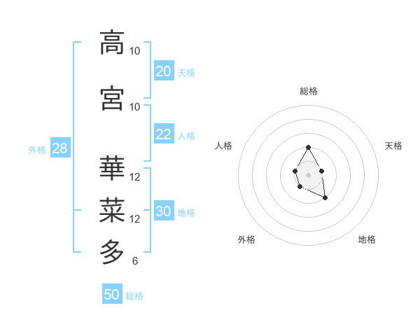 高宮 華菜多さんの総格は50画の2点!