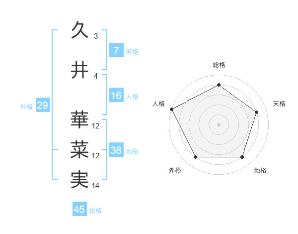 久井 華菜実さんを姓名の画数から五運を鑑定