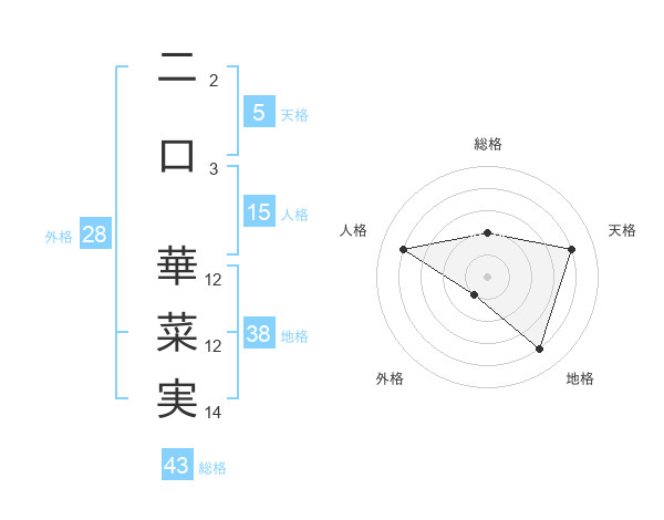 二口 華菜実さんの総格は43画の2点!
