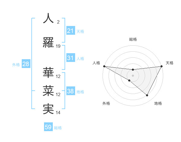 人羅 華菜実さんを姓名の画数から五運を鑑定