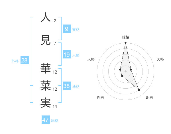 人見 華菜実さんの総格は47画の5点!