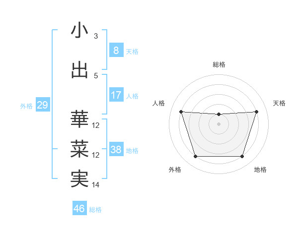 小出 華菜実さんの地格は38画の4点!