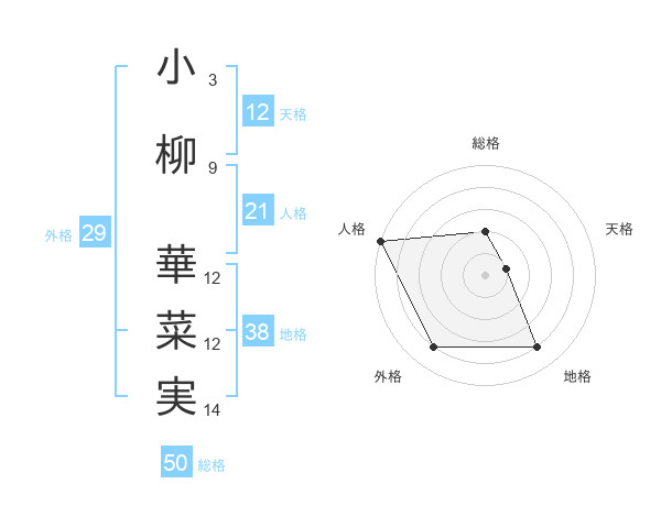 小柳 華菜実さんを姓名の画数から五運を鑑定