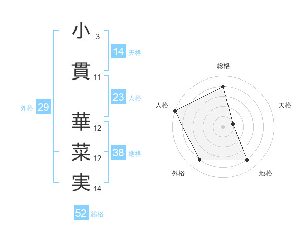 小貫 華菜実さんの総格は52画の4点!