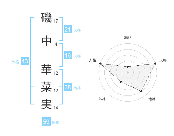 磯中 華菜実さんの天格は21画の5点!