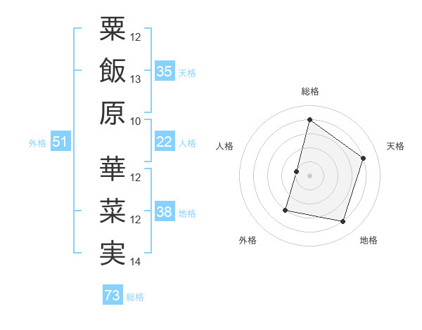粟飯原 華菜実さんの総格は73画の4点!