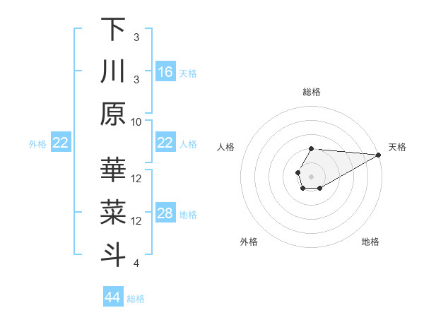 下川原 華菜斗さんを姓名の画数から五運を鑑定