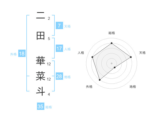 二田 華菜斗さんを姓名の画数から五運を鑑定