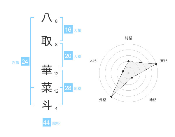 八取 華菜斗さんの総格は44画の2点!