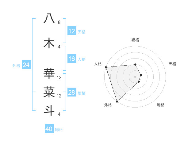 八木 華菜斗さんの総格は40画の2点!