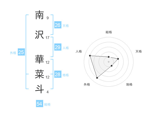 南沢 華菜斗さんの総格は54画の1点!