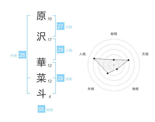 原沢 華菜斗さんを姓名の画数から五運を鑑定