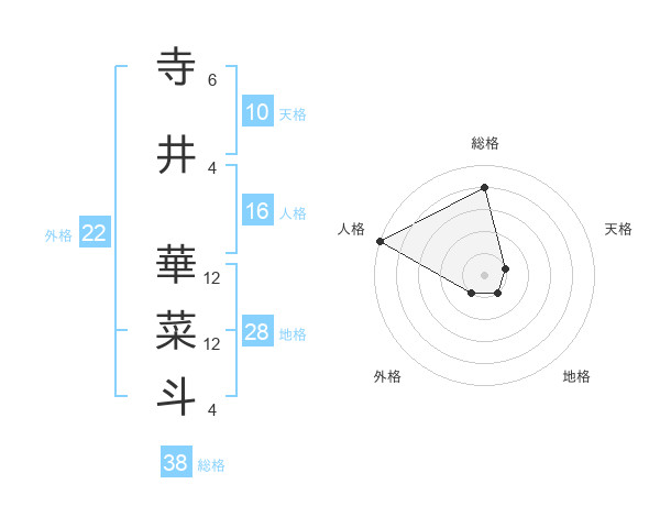 寺井 華菜斗さんの総格は38画の4点!