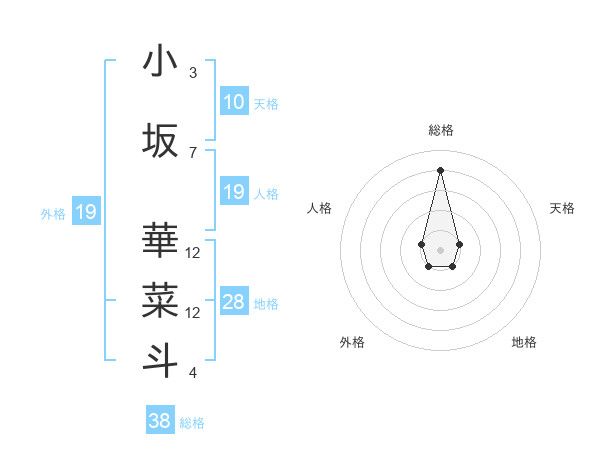小坂 華菜斗さんの総格は38画の4点!