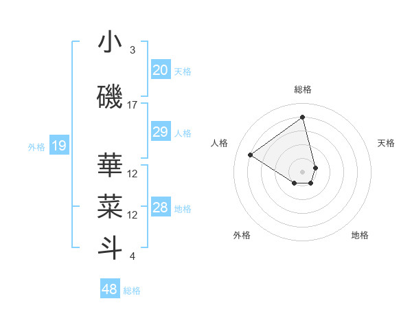 小磯 華菜斗さんを姓名の画数から五運を鑑定