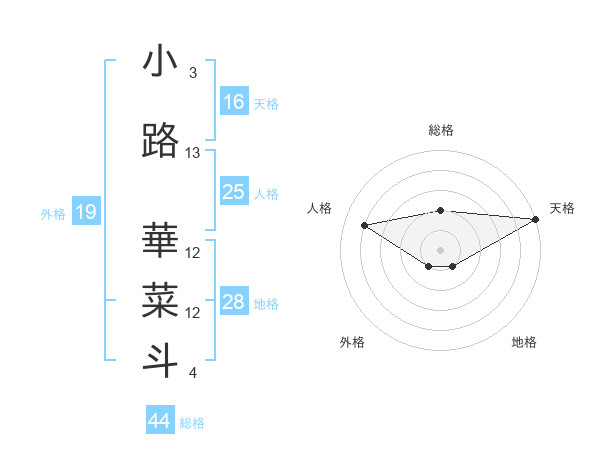 小路 華菜斗さんの天格は16画の5点!