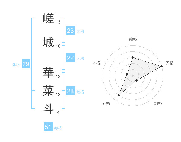 嵯城 華菜斗さんを姓名の画数から五運を鑑定