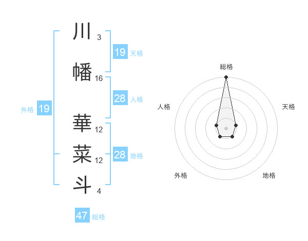 川幡 華菜斗さんを姓名の画数から五運を鑑定