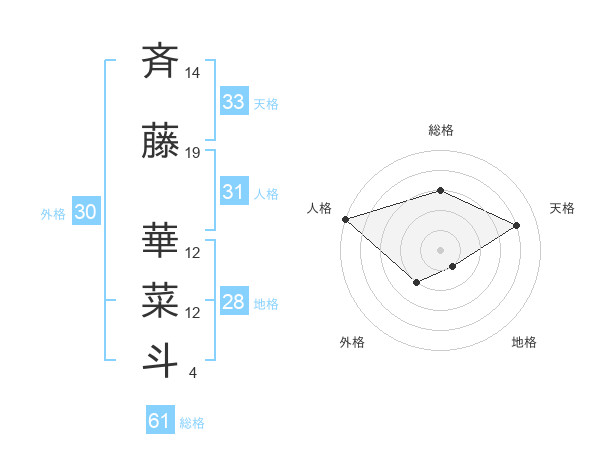 斉藤 華菜斗さんの総格は61画の3点!