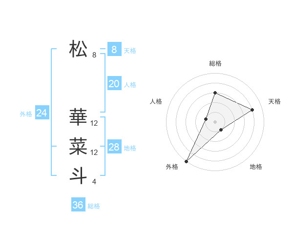 松 華菜斗さんの天格は8画の4点!