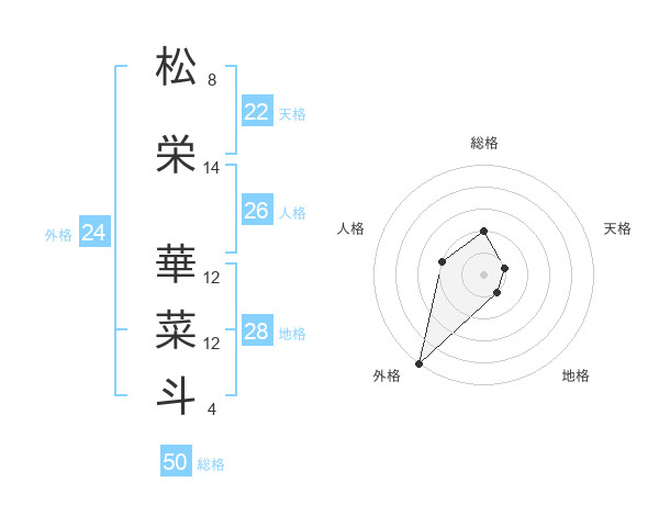 松栄 華菜斗さんの総格は50画の2点!