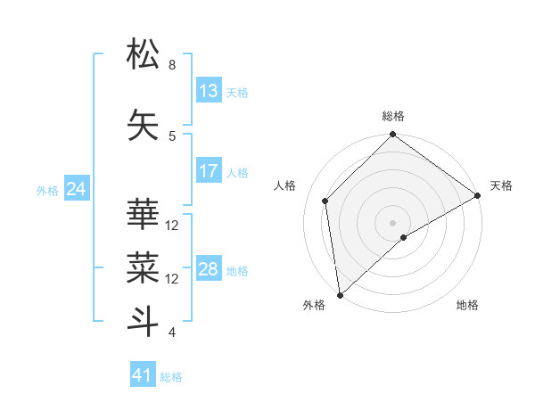 松矢 華菜斗さんの天格は13画の5点!